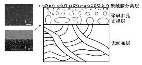 图1 传统薄层复合聚酰胺nf膜结构示意