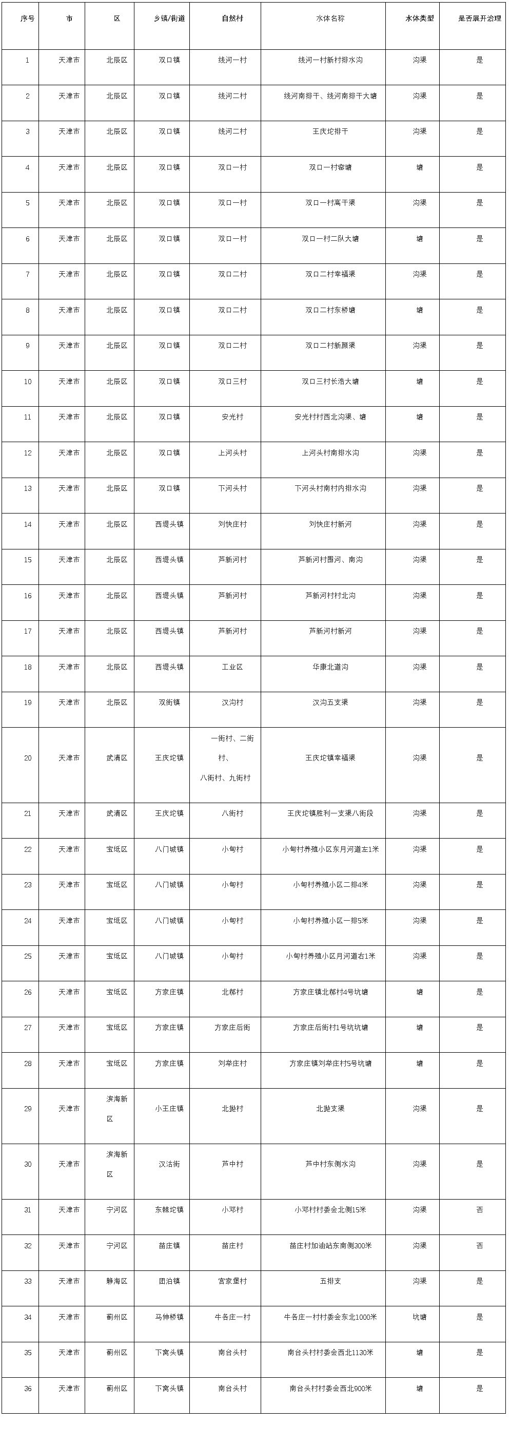 为贯彻落实《农村人居环境整治三年行动方案》,加快推进我市农村黑臭水体治理,解决农村突出水生态环境问题,根据《天津市农村黑臭水体排查方案》、《天津市农村黑臭水体治理工作方案》有关要求,我局会同市水务局、市农业农村委组织各涉农区持续开展农村黑臭水体排查治理工作,并对国家监管清单进行了更新,现公示如下: