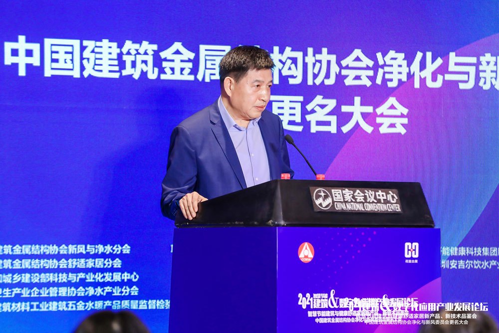 中国建筑金属结构协会副会长兼秘书长宋为民首先宣读了中国建筑金属结构协会文件《关于中国建筑金属结构协会净化与新风委员会名称变更的通知》,并发表致辞。宋为民表示,当前,我国已成为全球第二大经济体、绿色经济技术的领导者,而“双碳”目标和城市更新行动的实现过程,将是催生全新行业和商业模式的过程,新风与净水行业应当顺应科技革命和产业变革大趋势,抓住绿色转型和老旧社区改造带来的巨大发展机遇,从中寻找发展的机遇和动力;新风与净水分会的更名,是业务的进一步外延,希望分会借助在建筑行业的发展优势,搭建行业对接与应用的平台,解决好行业在发展中遇到的问题,探索适应我国国情的发展模式。