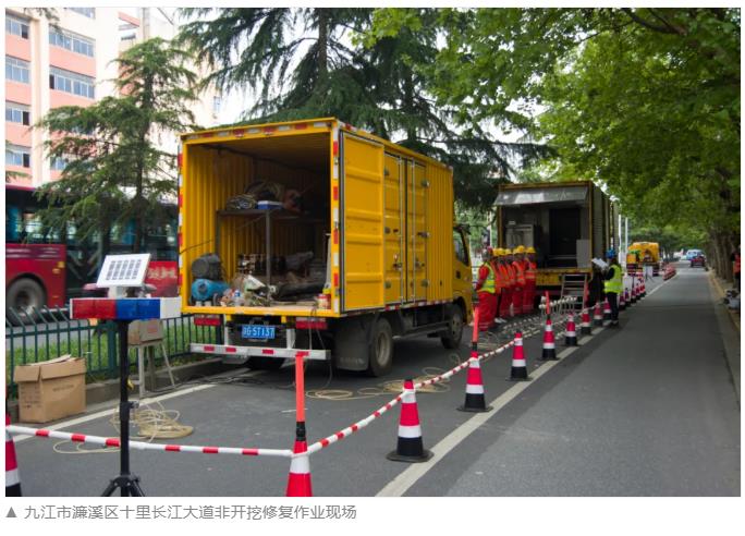 近日,在江西省九江市濂溪区长江大道上,明黄的工程车、长数十米的黄色软管以及浑身长满“触角”的银色灯架,组成特殊的“外科”组合,正在给道路下方的排水管网做“微创手术”。