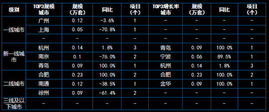 从城市结构来看,新一线及二线城市仍是主力,市场份额均超过40%,且与2021年同期相比,分别提升0.3、16.9个百分点。其中新一线城市中青岛、宁波、杭州净水规模领衔增长,二线城市中合肥、金华等净水规模增长较快。除此之外,2022年1月一线城市份额13.7%,与去年同期相比市场份额提升2.7个百分点,其中广州配套规模同比下降幅度小于精装大盘。