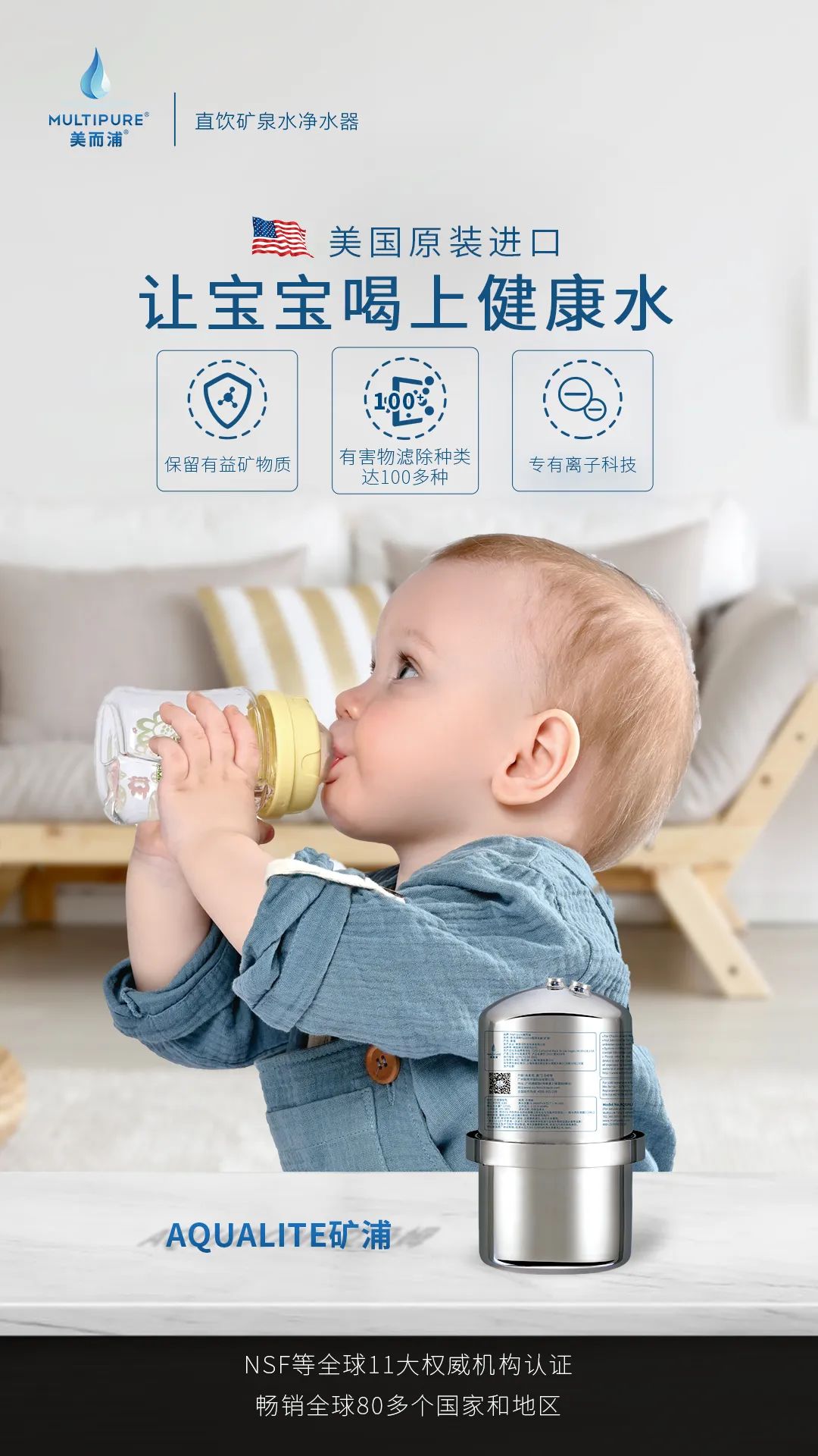 基于对净水消费走向的判断,即使在2022年特殊的环境下,美而浦依然发布了新一代的净水产品,即母婴款直饮矿泉水净水器—aqualite矿浦,成为市场热点。这款产品再次实现了多项性能的突破,除了在出水流量、总净水量、安装便捷性等方面优于市场同价位产品外,它的最大优势就是能够高效滤除各种污染物,同时保留有益矿物质和微量元素,净化后水质自然健康,更适合母婴长期饮用。