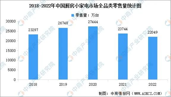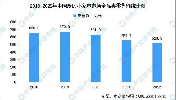 摘要:经过多年的发展,我国厨房小家电市场趋于饱和,已步入了存量竞争的境地,市场大部分需求来源于消费者的常规更新迭代,由于缺乏新品类拉动消费需求,我国厨房小家电销量持续下跌。(下文主要数据或观点引用自:中商情报网)