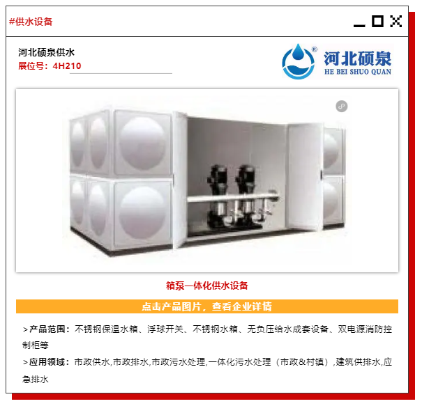 作为华北地区最大的水处理展,本届展会展示内容覆盖污泥处置、水环境综合治理、消毒杀菌、污水/废水处理设备、蒸发结晶、水务工程、膜及膜组件、膜产品、化学品、过滤与分离、泵管阀、仪器仪表等,预计将汇聚各品类企业及品牌在内超600家优质展商,展出超15,000件水处理产品。