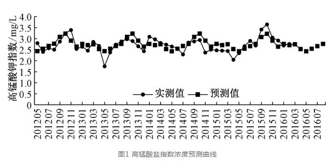 以预测原水高锰酸盐指数超标风险为例,山东省城市供排水水质监测中心为做好水质风险预警,根据2012年5月~2016年2月的高锰酸盐指数月检数据,预测未来一段时间的高锰酸盐指数月度平均值。根据数据波动特征,选择指数平滑法模型进行分析,预测结果显示2016年3~8月的高锰酸盐指数月均浓度不存在超标风险。