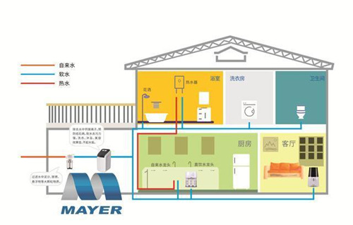 软水器:安装在设备间/卫生间,主要原理是置换水中的钙镁离子,软化水质,没有过滤/清洁水质的作用。