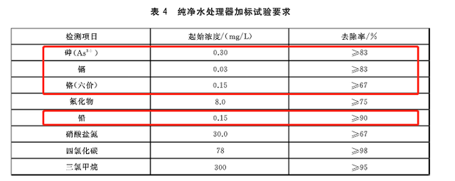 这从两种净水器的标准也能看出来,国标中,反渗透净水装置对砷、镉、铬(六价)、铅等可溶性金属离子的过滤效果方面,均有提出相应去除率要求,而普通的超滤净水器则没有这些要求。