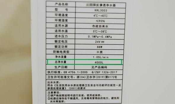 需要注意的是,一般净水器都不只有一根滤芯,而这个额定总净水量是根据“最短命”的那根滤芯计算的,所以也只能是作为一个参考。另外,水质不同,对滤芯的损耗程度也是不同的,如果你家的水质较差的话,也会缩短滤芯的使用寿命。所以,换芯周期因地因人而异。