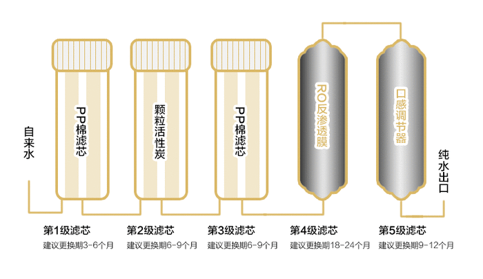 这个滤芯使用寿命就有学问了,怎么看呢?一些产品详情页上都有商家建议的更换周期,这个可以参考吗?我想说,可以看,但别当真。滤芯使用寿命,最有参考意义的是额定总净水量,可以理解为,滤芯都有个水量过滤额度,这个额度用光了,那么之后过滤的水就不符合标准了,滤芯就需要更换了。
