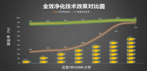 理想很丰满,现实却一直很骨感。传统大通量净水机采用的反渗透膜虽然净化效果卓越,出水量也不小,但其在停止工作后膜壳内的废水和纯水会相互渗透,随着时间越长膜内的纯水tds值越高,首杯水净化率只有20%一50%,“第一杯水净化难”成为净水机行业一直无法突破的难题。