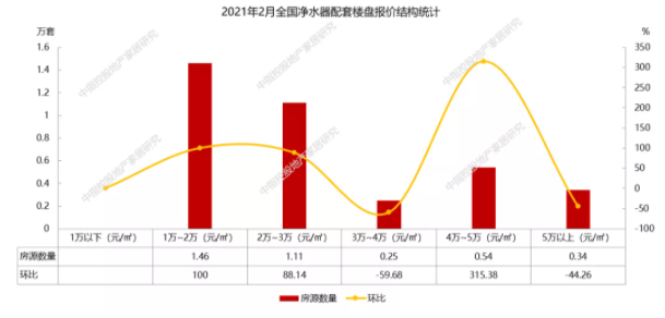 2月份,精装渠道净水器配套集中于1万-3万中端售价楼盘