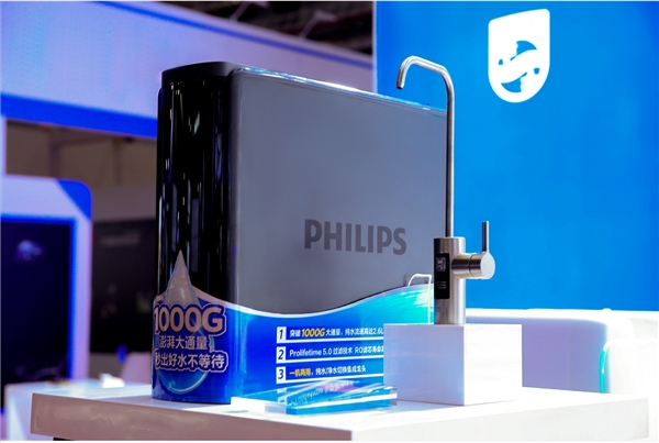 此次展出的飞利浦反渗透净水器,采用了飞利浦健康净水技术,包含三项黑科技。第一,aquashield 多重净化系统,能有效滤除有机物、余氯、吸附异色异味,滤除水中的细菌、病菌等有害物质达99%以上,在保障健康用水同时,改善水的口感,为用户带来更高品质的净水体验。第二,prolifetime 5.0 反渗透技术,依托优质进口膜进行设计改良,能有效深层净化,在保障优质过滤效果的同时,实现ro滤芯寿命突破5年之久,大大减少换芯频率和换芯成本。第三,双水路分流系统,搭配第三代集成水路一体式出水设计,不仅有效降低漏水风险,还能一机实现生活水和饮用水两种供水模式,用水更科学合理,还能节省ro滤芯的损耗。