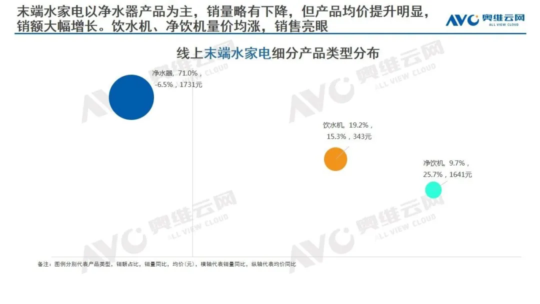 在末端净水产品中,净水器的表现尤为突出,销售额占到线上末端水家电的71%,线上零售额12.6亿元,同比增长17.2%,零售量为72.8万台。
