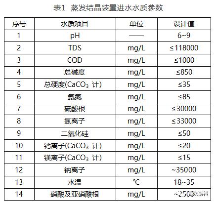 蒸发结晶装置的进水水质见表1: