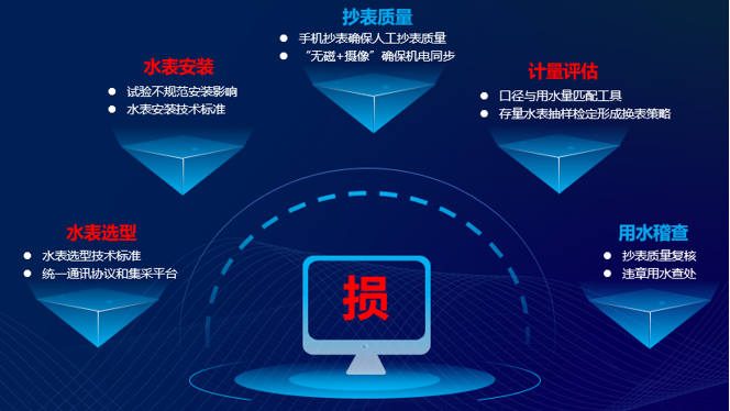漏损控制不仅要控制“漏”,更要关注“损”,营销管理从水表选型、水表安装、抄表质量、计量评估、用水稽查出发,针对性解决计量损失问题。