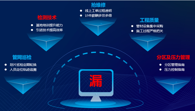 汪力表示,漏损控制要遵循“管理先行、业务支撑、智慧赋能、培训保障”的总体思路。